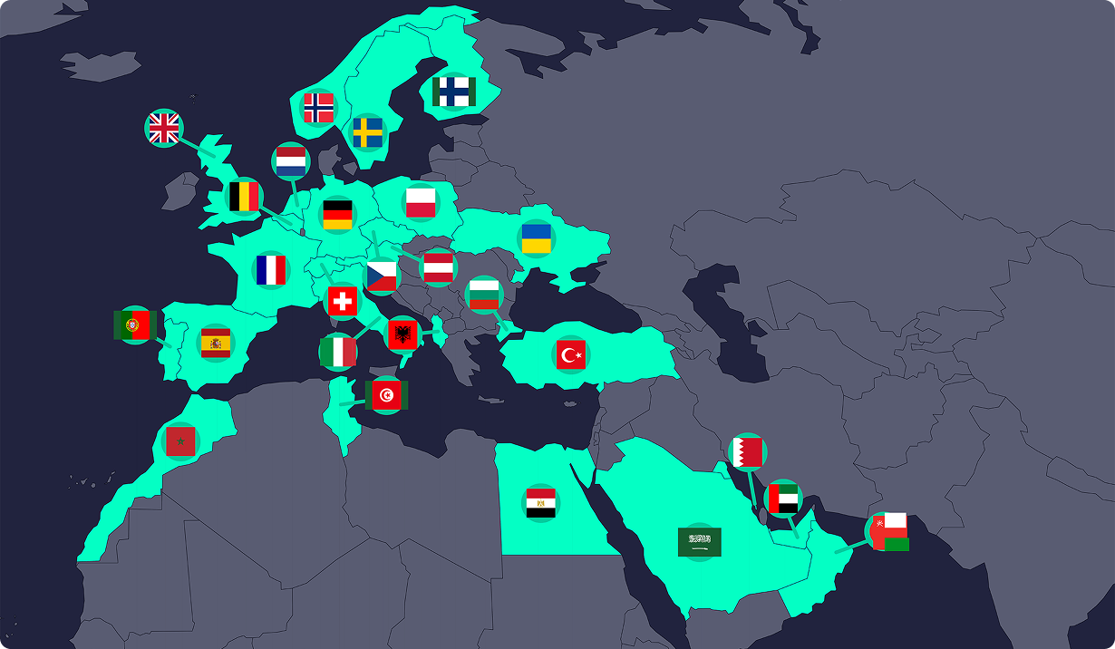 Die Tie-in GmbH verfügt über ein umfangreiches Netzwerk und Zugang zur Industrie in zahlreichen Ländern, darunter: